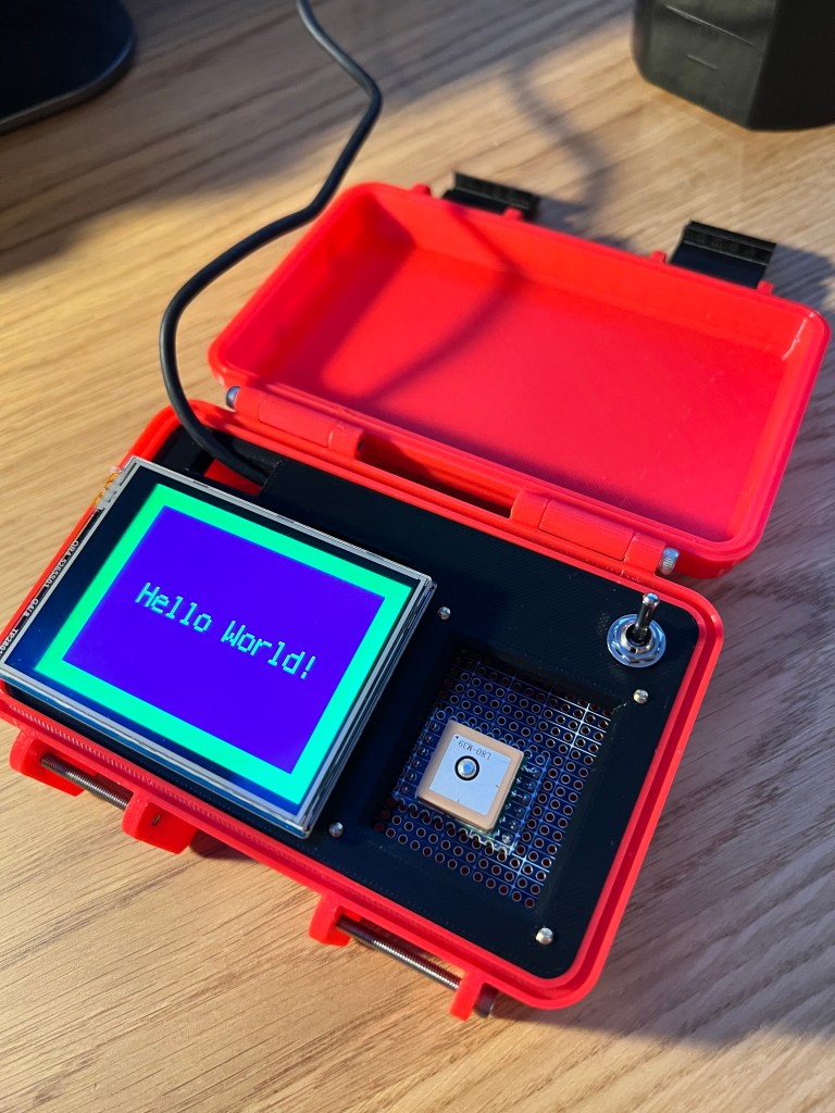 Oh and that red case is one I found here on printables …. I printed a face plate that pressure fits inside, and can mount this pico display on, with a hole for a USB cable for power/debugging and a bit of proto-board to attach whatever I want, like buttons or the L80-M39 GPS module I like working with to to expand the project and keep it in a box!